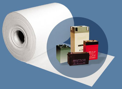 玻璃纖維隔板適用與閥控式密封鉛酸蓄電池。具有防水短路、吸附所需的電解液并有氧氣穿透的自由通道,使氧氣可通過隔板在負(fù)極上在化合成水、不需補(bǔ)充水、免維護(hù)等功能,是新一代環(huán)保型蓄電池的主要材料。